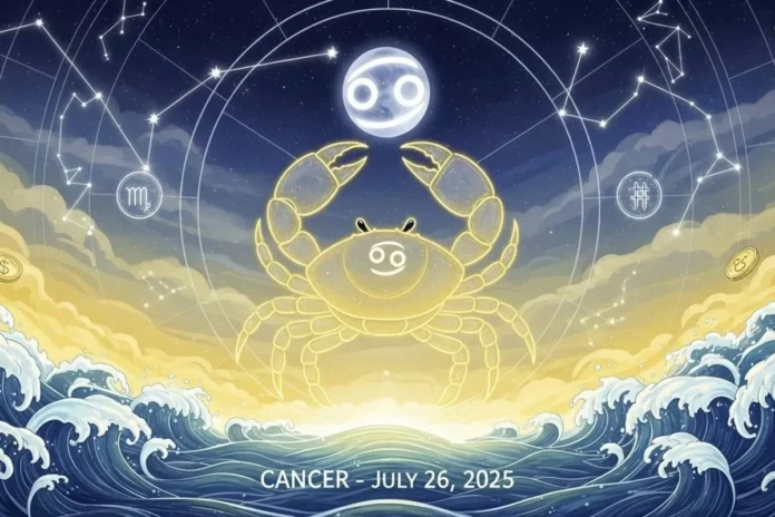 Cancer Daily Horoscope, July 26, 2025: Finances show ups and downs — be wise in decisions. Career gains and good news are likely. Stay grounded, alert, and calm.