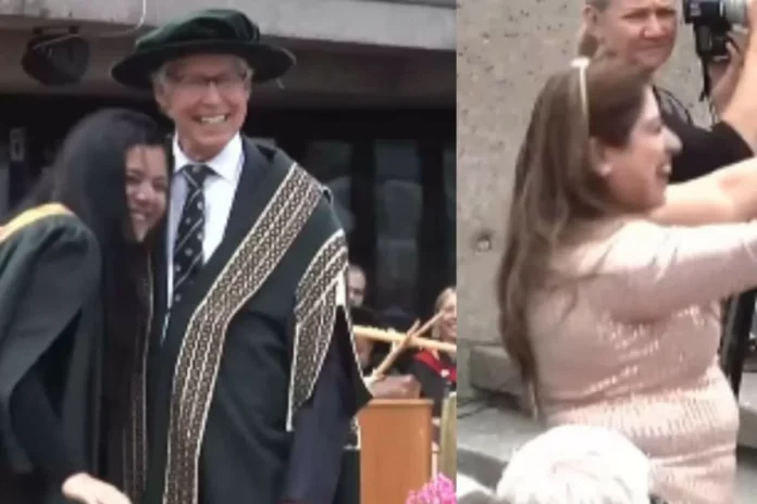 The ceremony, which took place at the University of British Columbia, was captured on camera and shared on social media by the proud daughter, Aisha Saeed. In the video, we see Aisha walking across the stage to receive her degree, but what caught everyone’s attention was her mother’s reaction.
