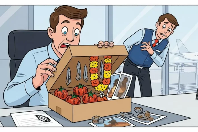 The Bengaluru airport’s post office recently received a very unusual parcel that has left everyone baffled. The package, which was sent from an unknown location, contained a bizarre combination of items – rotten tomatoes, a flower garland, pieces of iron, toothpaste, and even obscene photos. This strange mix of items has raised many questions and has left the authorities scratching their heads.